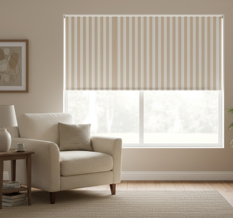 En Rullgardin vardagsrum beige randig är mer än bara en funktionell produkt; den är en stilfull dekoration som förhöjer hela rummets atmosfär. Med sin mjuka och neutrala färgton passar den perfekt in i olika inredningsstilar och ger en harmonisk känsla. Den randiga designen skapar djup och dimension, vilket gör att ditt vardagsrum känns både inbjudande och elegant. Varför inte låta denna fantastiska rullgardin bli en del av ditt hem och skapa en miljö som både är vacker och praktisk? Låt den bli en del av din stiliga inredning!