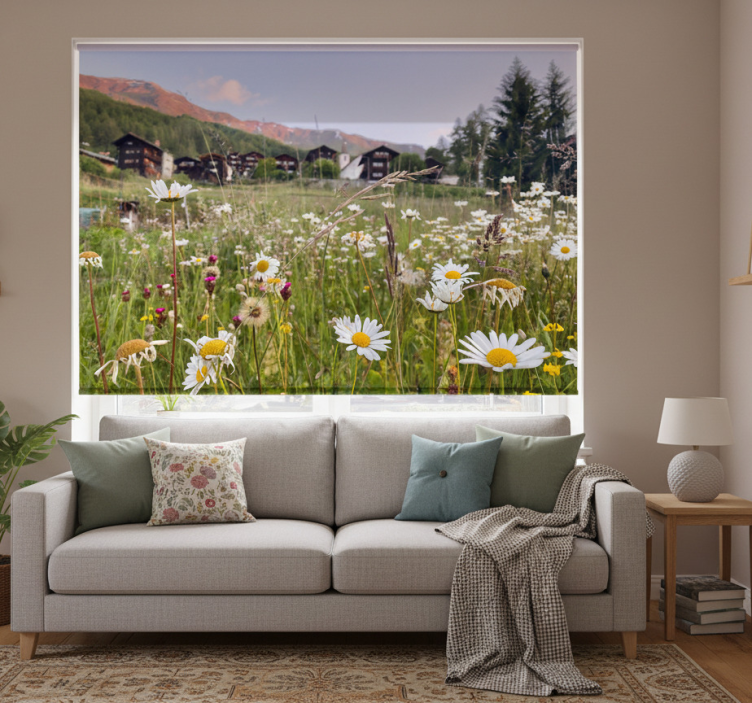 Referens: E9446Välkommen till en värld av stil och elegans med vår Rullgardin vardagsrum blommor landskap i bygd. Denna fantastiska rullgardin pryds av en vacker blommig design som förenar naturens skönhet med en lugn landskapsutsikt. Med sina mjuka och harmoniska färger skapar den en fridfull atmosfär i ditt vardagsrum. Dessutom är den enkel att montera med 2 klick och lätt att städa, vilket gör den till ett praktiskt och vackert inslag i ditt hem. Den skyddar effektivt mot direkt solljus och ger dig den integritet du behöver när den sänks. För att ytterligare förbättra din inredning, kan du välja mellan 3 olika texturer beroende på hur mycket ljus och avskildhet du önskar!