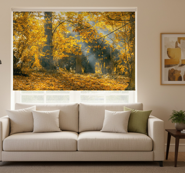 En Rullgardin vardagsrum gyllene höst är det perfekta valet för att skapa en varm och inbjudande atmosfär i ditt hem. Genom att kombinera funktionalitet med en stilren design, erbjuder denna rullgardin både skydd och estetik. Den hjälper till att reglera rummets belysning och ger en känsla av avskildhet, vilket gör att du kan njuta av ditt vardagsrum utan insyn. Låt denna rullgardin bli en del av din inredning och skapa en harmonisk miljö som inspirerar till avkoppling!