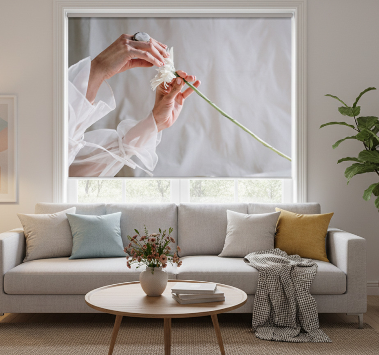 Rullgardin vardagsrum konstnärlig blomma