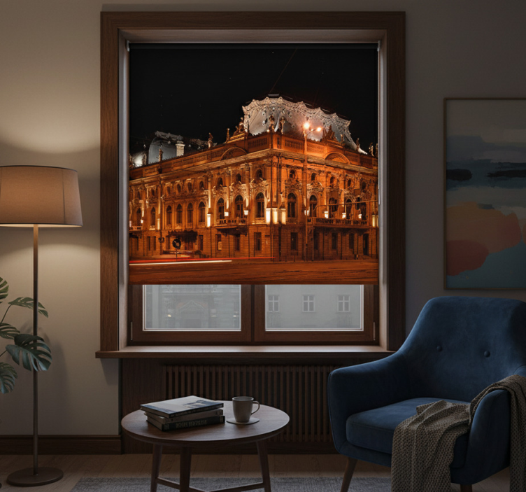 Rullgardin vardagsrum Łódź natttid