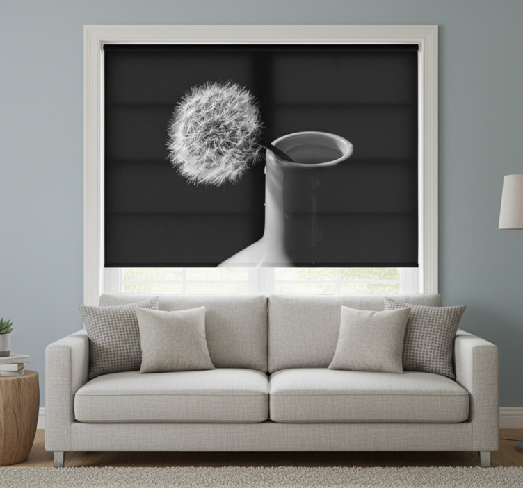Rullgardin vardagsrum maskros i kruka