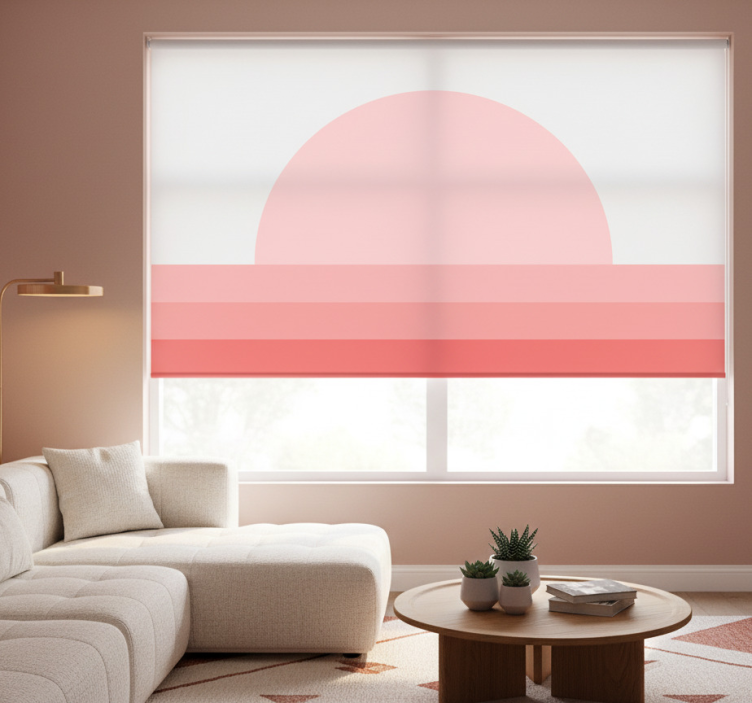 Rullgardin vardagsrum rosa 70-tals solnedgång