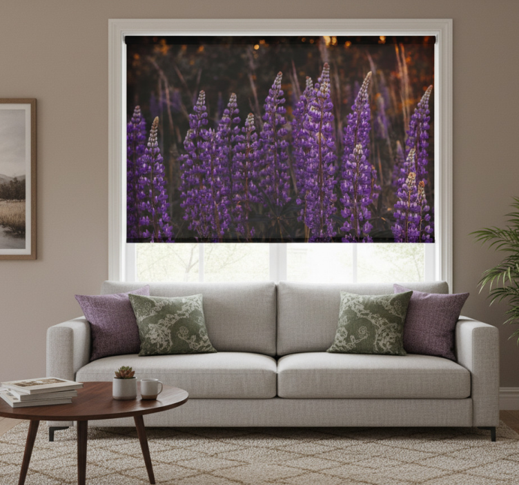 Rullgardin vardagsrum skog återupplivad av violetta blommor är den perfekta detaljen för att förvandla ditt vardagsrum till en fridfull oas. Med sin fantastiska design och funktionalitet bidrar den till en varm och inbjudande atmosfär. Varför inte låta den blommiga skönheten inspirera din inredning och skapa en plats där du kan koppla av och njuta av livet? Denna rullgardin är inte bara ett praktiskt val, utan också ett konstverk som lyfter hela rummet!