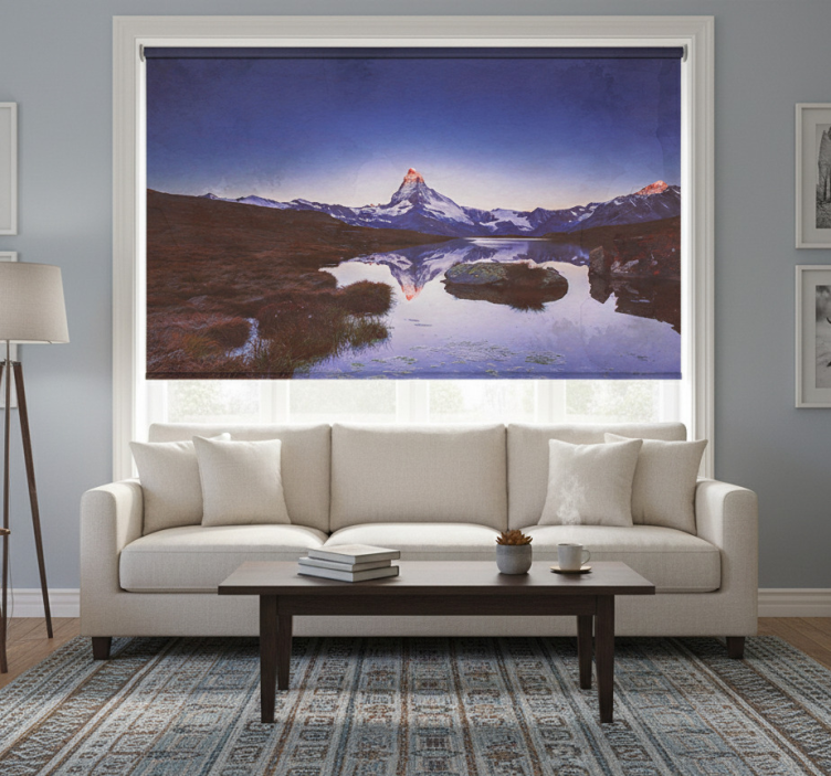 Vår Rullgardin vardagsrum snöig berg med spegelbild på vatten är den perfekta lösningen för att förvandla ditt hem! Den skapar en imponerande atmosfär som fångar alla blickar och ger rummet en exklusiv känsla. Med sin förmåga att skydda mot direkt solljus och ge nödvändig integritet när den är sänkt, gör den att du kan njuta av ditt vardagsrum fullt ut. Dessutom hjälper den till att reglera rumstemperaturen och bidrar till en behaglig inomhusmiljö. Låt denna underbara rullgardin bli en del av din inredning och skapa en inspirerande plats att koppla av på!