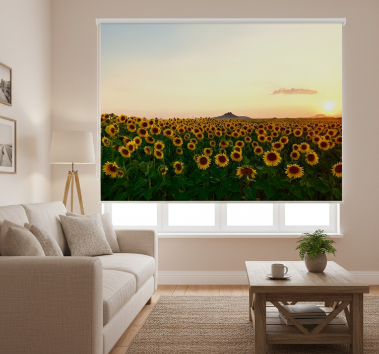 Rullgardin vardagsrum storslaget landskap med blommor