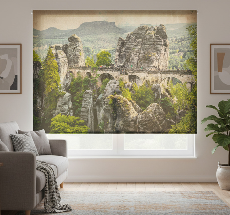 En rullgardin vardagsrum vacker stenbro i bergen kommer att förhöja din inredning och skapa en harmonisk atmosfär. Denna rullgardin är inte bara en praktisk lösning för att blockera ljus, utan också ett stilfullt inslag som ger ditt rum en unik karaktär. Tänk dig att luta dig tillbaka i ditt vardagsrum, omgiven av den underbara stenbro-designen. Den ger en känsla av att vara i naturen, vilket skapar en avkopplande miljö där du kan njuta av din tid hemma. Gör ditt hem mer personligt och stiligt med denna fantastiska rullgardin!