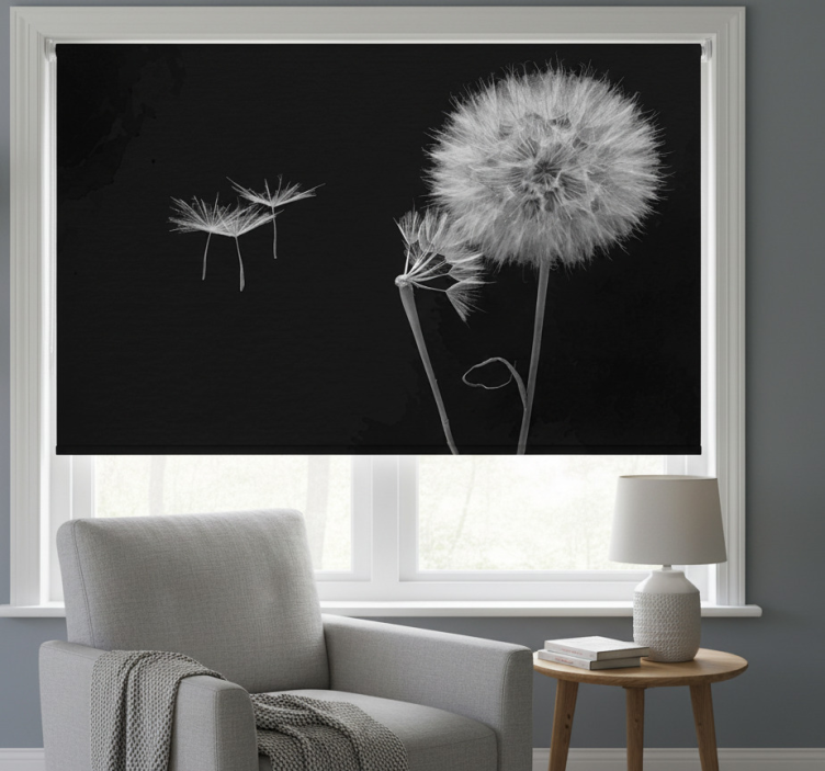 Referens: E8734Vår Svart rullgardin med väggmålning av maskrosfrön är en visuell fest för ögonen! Denna eleganta rullgardin är designad med en fantastisk väggmålning av maskrosfrön, vilket ger en sofistikerad och modern känsla till ditt hem. Med sin djupa svarta färg och det unika mönstret skapar den en vacker kontrast som förvandlar vilket rum som helst. Dessutom är den både lätt att städa och ger ett effektivt skydd mot direkt solljus, vilket gör den till en perfekt lösning för både funktion och estetik.