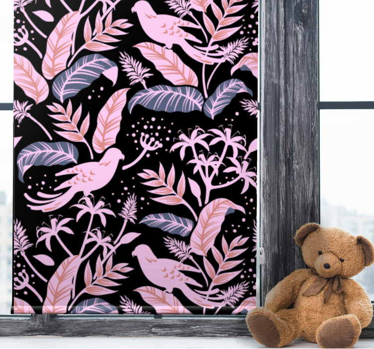 Upptäck vår fantastiska Tropiska fågelmotiv Rullgardin andra djur, som är en perfekt kombination av stil och funktionalitet! Med ett grafiskt mönster av färgglada fåglar och lövvärk i rosa nyanser, skapar denna rullgardin en livlig atmosfär i ditt hem. Den frodiga floran och djurmotiv gör att den sticker ut och ger en tropisk känsla till varje rum. Låt din inredning blomstra med denna vackra rullgardin!