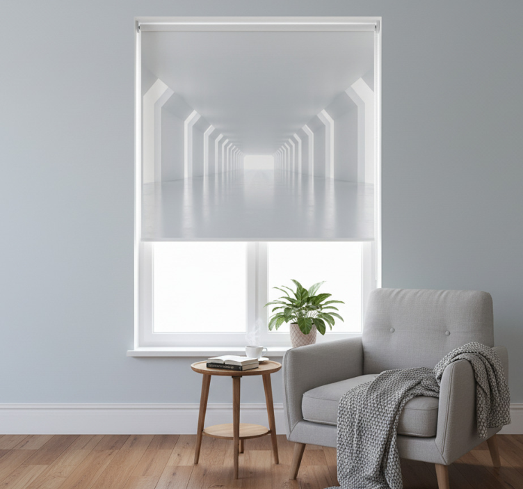 Upptäck den eleganta Vit rullgardin futuristisk korridorperspektiv, som erbjuder en modern och stilren design. Med sina rena linjer och minimalistiska estetik ger denna rullgardin ett futuristiskt intryck som passar perfekt in i både hem och kontor. Den är dessutom enkel att städa och gör att du kan njuta av ett fräscht och snyggt rum utan ansträngning. Med 100 % anpassningsbara mått och tre olika texturer att välja mellan, kan du justera mängden ljus och avskildhet efter dina önskemål. Låt din inredning blomstra!