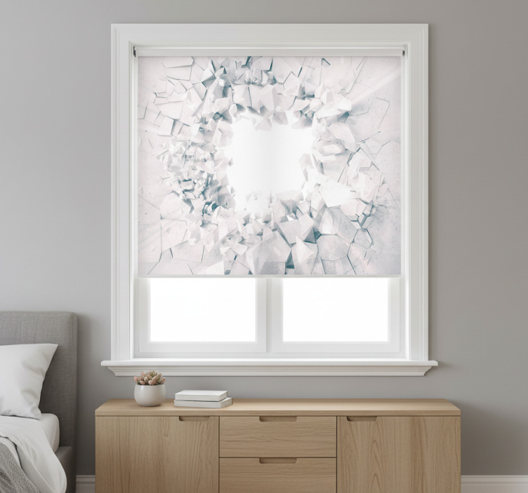 Vit rullgardin med exploderande geometriska former