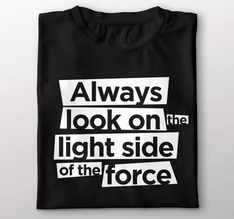 Denna Always look light side t-shirt är en perfekt kombination av stil och motivation! Med sin grafiska design som inkluderar ord som alltid, tvinga, och inspirerande citat, får du en enfärgad t-shirt i svart eller vit som verkligen sticker ut. Det roliga budskapet ger ett fantastiskt lyft till din garderob och sätter en positiv ton på din dag!