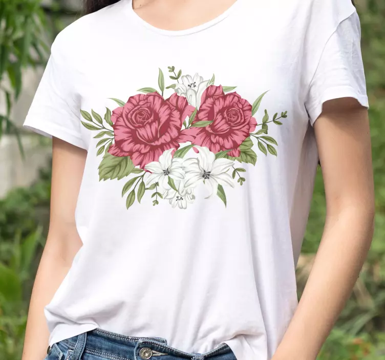 Referens: T4320Denna design har blommande rosor och liljor, som symboliserar skönhet och elegans. De livliga färgerna står ut och skapar en slående visuell attraktion. Perfekt för avslappnad klädsel, visar den en harmonisk blandning av blommiga element, vilket gör den till ett idealiskt val för alla som vill förmedla en fräsch och upplyftande känsla.