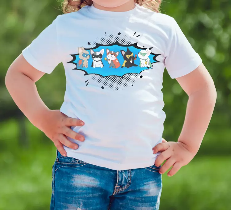 Upptäck vår fantastiska Barn t-shirt superhjältehundar kollektion! Denna design är en härlig kombination av hundar och superhjältar, perfekt för barn som älskar sällskapsdjur och roliga illustrationer. Varje t-shirt har en färgglad och lekfull karaktär, vilket gör den till en favorit för både barn och föräldrar. Låt ditt barn känna sig som en riktig superhjälte med våra unika t-shirts!