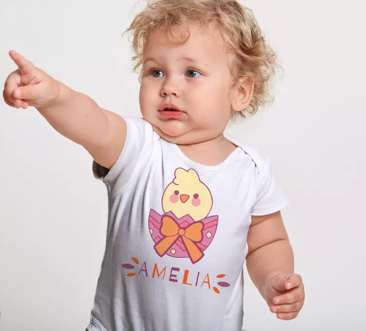 Denna bebis t-shirt söt kyckling med rosett är en lekfull och färgrik design med en charmig kyckling som har en söt rosett. Denna t-shirt är perfekt för din lilla fågelunge och fångar verkligen uppmärksamheten med sina djurmotiv och personliga detaljer. Oavsett om det är för ett speciellt tillfälle eller vardagslek, kommer denna anpassningsbara t-shirt att bli en favorit i barnets garderob!