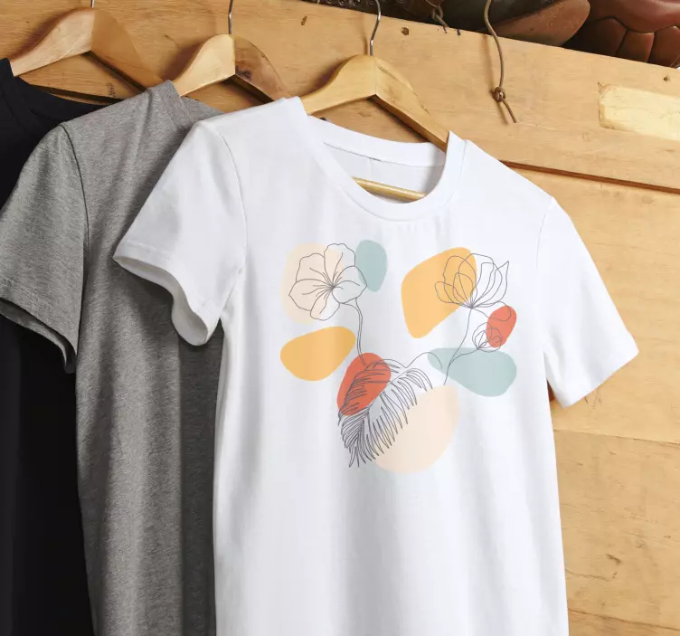 Upptäck vår Floral minimalist vit t-shirt, en fantastisk sammansättning av abstrakt konst med blommor, rader och former som ger en unik känsla till varje outfit. Denna t-shirt pryds av kronblad och blommig design som är både minimalistisk och färgrik, perfekt för att uttrycka din stil genom linjekonst som verkligen fångar ögat. Med sin komfort och elegans är den ett måste i din garderob!
