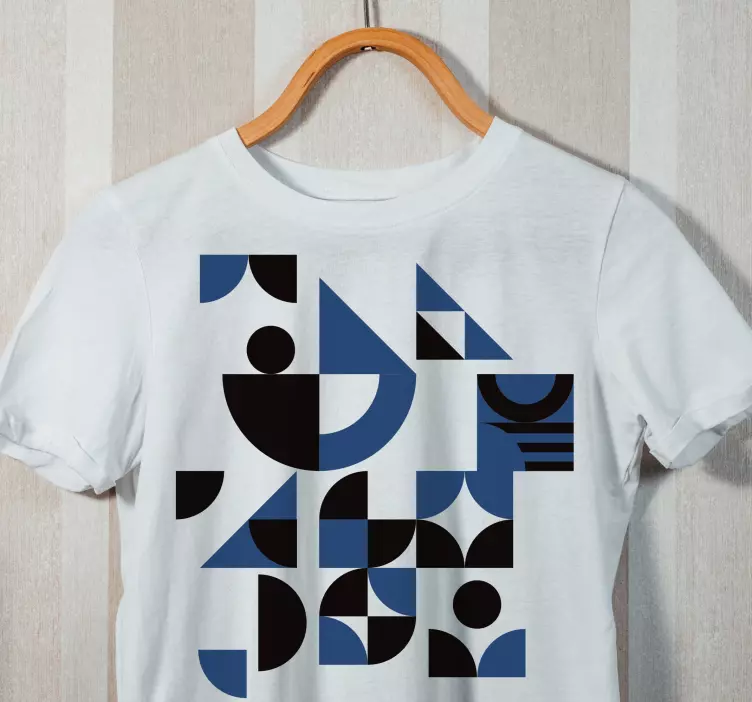Upptäck vår geometriskt mönstrade t-shirt, designad med en modern och snygg stil som verkligen fångar ögonen! Den fantastiska grafiken kombinerar geometri och geometrier i en unik abstrakt illustration som påminner om ett pussel av former. Färgerna i blått och svart skapar en harmonisk balans som gör denna geometriska t-shirt perfekt för både vardagsbruk och festliga tillfällen.