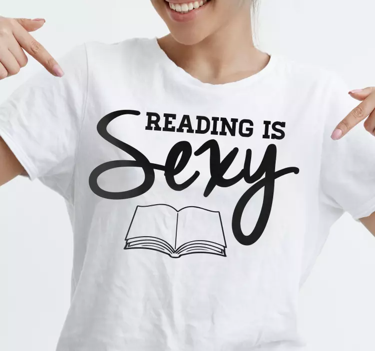 Referens: T4635Denna design har en trendig text som säger 'Reading is Sexy' tillsammans med en enkel illustration av en öppen bok. Den lekfulla frasen tilltalar bokälskare och främjar läsglädjen, vilket gör den till ett roligt tillskott till avslappnad klädsel.