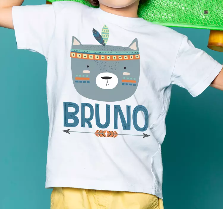 Referens: T4968Denna design har ett bedårande björnfans med tribal-element, framhävt av livliga färger och ett personligt namn. Den utstrålar en glad känsla som är perfekt för barn. Kompositionen är engagerande och visuellt tilltalande, vilket gör den till ett utmärkt val för de unga.