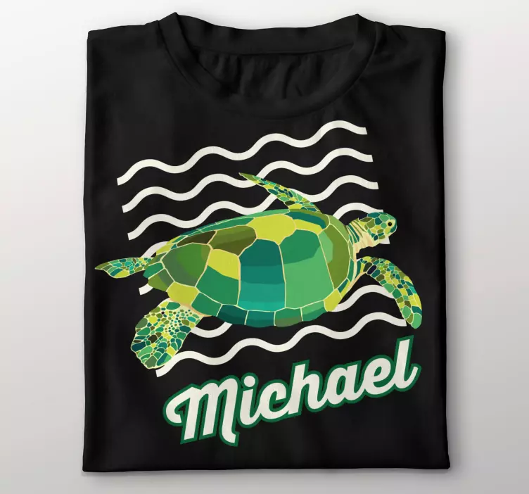 Referens: T4978Denna design visar en livfull grön havssköldpadda som simmar graciöst. De intrikata mönstren och färgerna väcker en känsla av havets skönhet. De flödande linjerna i bakgrunden tillför rörelse, medan namnet ger en personlig touch, vilket gör det till ett unikt statementsstycke.