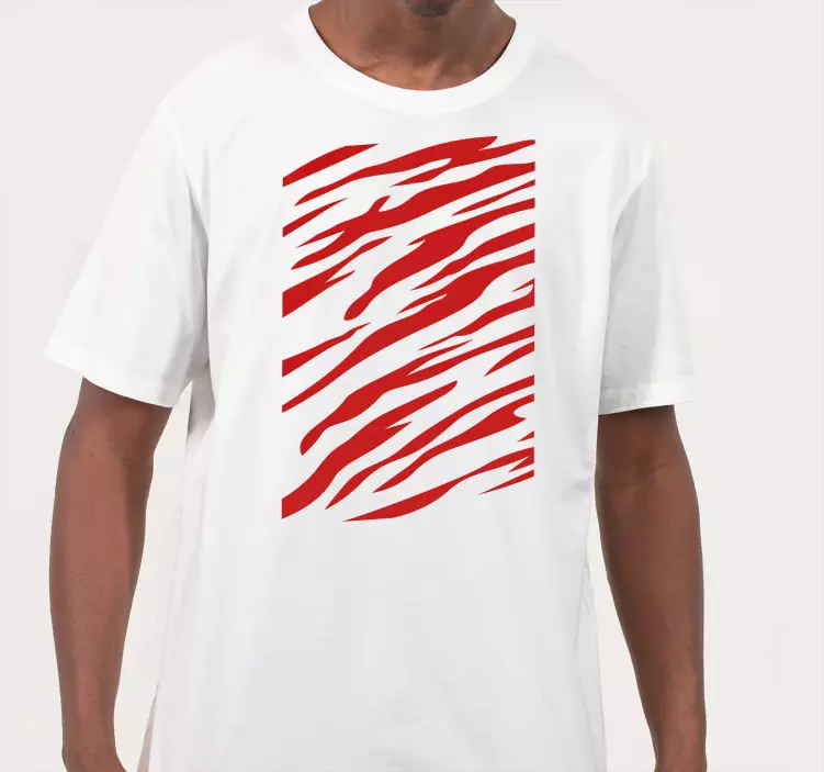 Upptäck vår fantastiska T-shirt med djärva röda ränder som kombinerar en livfull design med stil och komfort! Denna grafiska t-shirt har ett unikt mönster med tiger och ränder i en stark röd färg som skapar en imponerande kontrast. Med sitt moderna och dynamiska utseende kommer denna t-shirt att bli en favorit i din garderob!