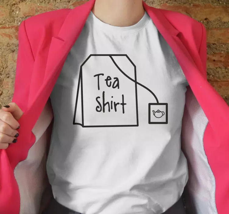 Referens: T4909Denna lekfulla design kombinerar ett kvickt koncept med en tepåse-illustration. Texten leker med orden och säger 'Tea shirt', vilket tilltalar teälskare. Den minimalistiska stilen och den monokroma paletten förstärker dess charm, vilket gör den till ett perfekt val för avslappnade utflykter eller speciella evenemang.