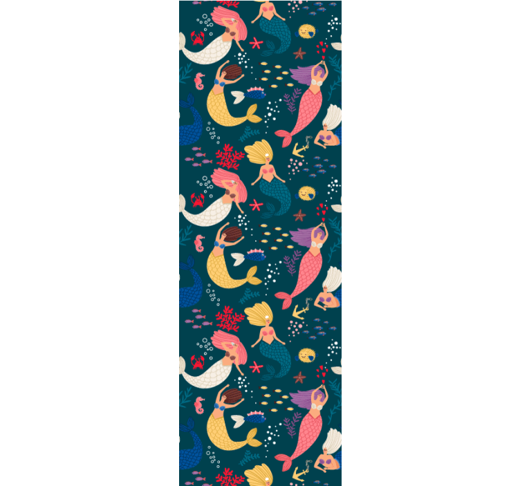Skapa ett fantastiskt utseende i ditt rum med denna mörkblå sjöjungfrun mönster cool abstrakta tapet. Den abstrakta tapettapetrullen är mönstrad med otroligt olika illustrationer av sjöjungfrur och havslevande varelser.
