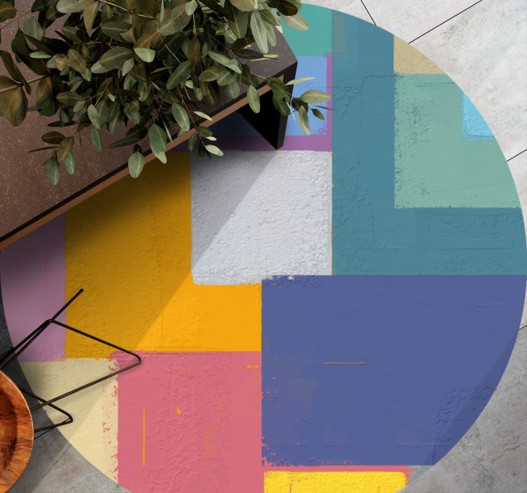 Referens: R8097Abstrakt målning färgglada rutor cirkulär matta - förstärka utseendet på ett rum eller vilket utrymme som helst med denna halkskyddande golvvinylmatta placerad på golvytan.
