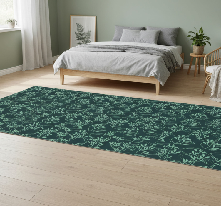 Gröna vintageväxter vinylmatta sovrum