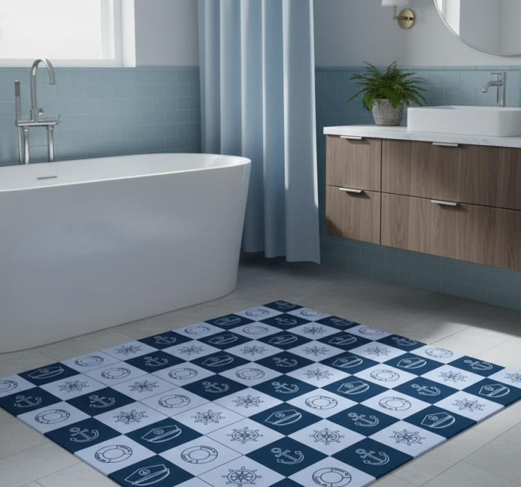 En vinylmatta badrum med marina symboler är mer än bara en yta; den skapar en atmosfär av lugn och harmoni i ditt badrum. Med sina inspirerande marina motiv kan denna matta sätta tonen för hela rummet och göra det till en plats där du kan koppla av och njuta. Den är perfekt för att ge en personlig touch och för att framhäva din stil på ett unikt sätt!