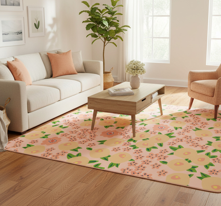 Vinylmatta blommor och växter originalblommönster i persika