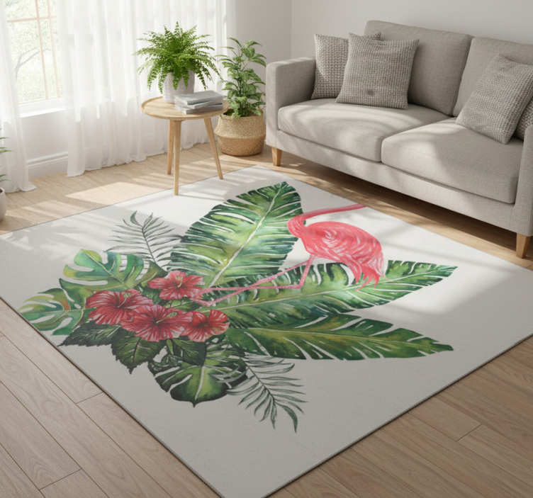 En Vinylmatta blommor och växter stor tropisk flamingo är inte bara en golvmatta, utan en riktig konstverk som förvandlar ditt rum! Genom att använda den här mattan kan du skapa en unik atmosfär där stil möter funktion. Den livliga designen ger en fräsch känsla och sprider glädje, vilket gör den idealisk för vardagsrum, barnrum eller till och med kontor. Med sin förmåga att skydda golvet och ge en behaglig yta att gå på, är denna matta ett utmärkt val för dekoration!