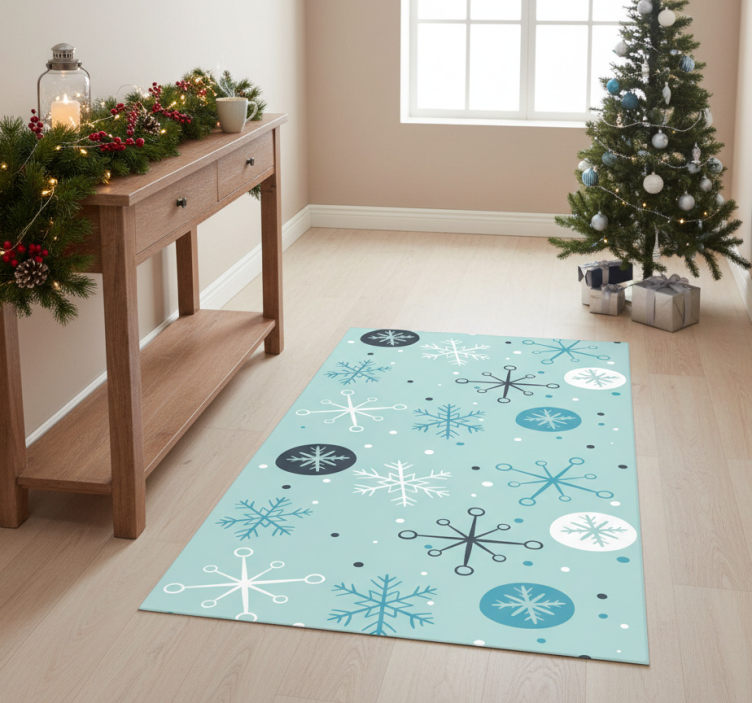 Att dekorera med Vinylmatta jul dekorativa blå och vita snöflingor Vinylmatta Jul är ett utmärkt val för att skapa en inbjudande atmosfär under julen! Denna matta är inte bara en dekoration, utan en del av jultraditionen som ger värme och glädje till ditt hem. Med sina vackra snöflingor blir varje rum en festlig plats där familj och vänner kan samlas. Gör ditt hem till en plats för minnen och skratt med denna underbara vinylmatta som verkligen sätter stämningen!