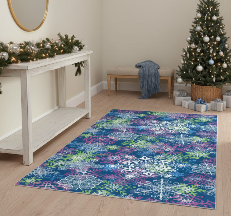 Att välja Vinylmatta jul med lysande snöflingor på blå bakgrund som dekoration är ett utmärkt val för att höja julstämningen i ditt hem! Denna Vinylmatta Jul erbjuder inte bara en unik och festlig design utan skyddar också golvet och ger en varm känsla i rummet. Perfekt för både vardagsrum och kök, ger den en härlig känsla av gemenskap och glädje när familj och vänner samlas.