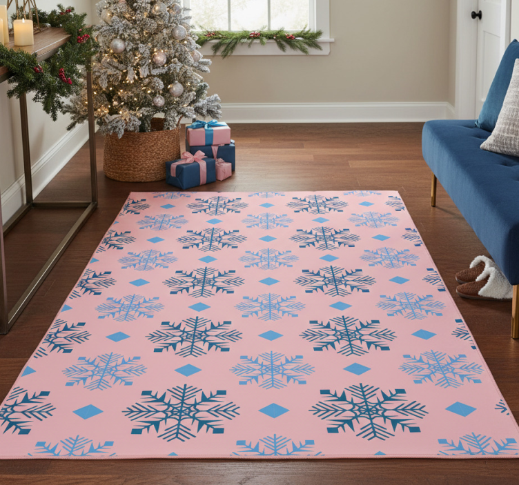 Vinylmatta jul med mönster av rosa och blå snöflingor