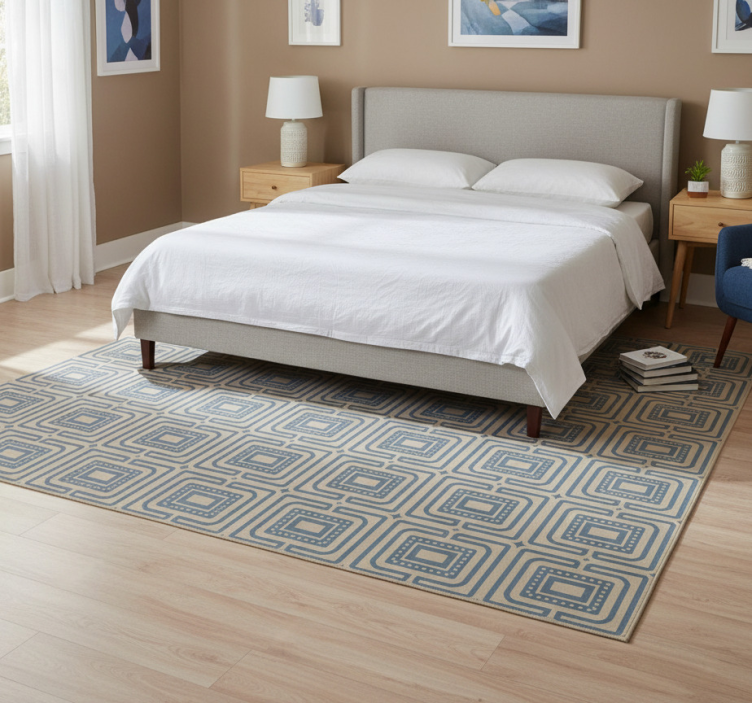 Vinylmatta sovrum i brons och mörkblå fyrkanter