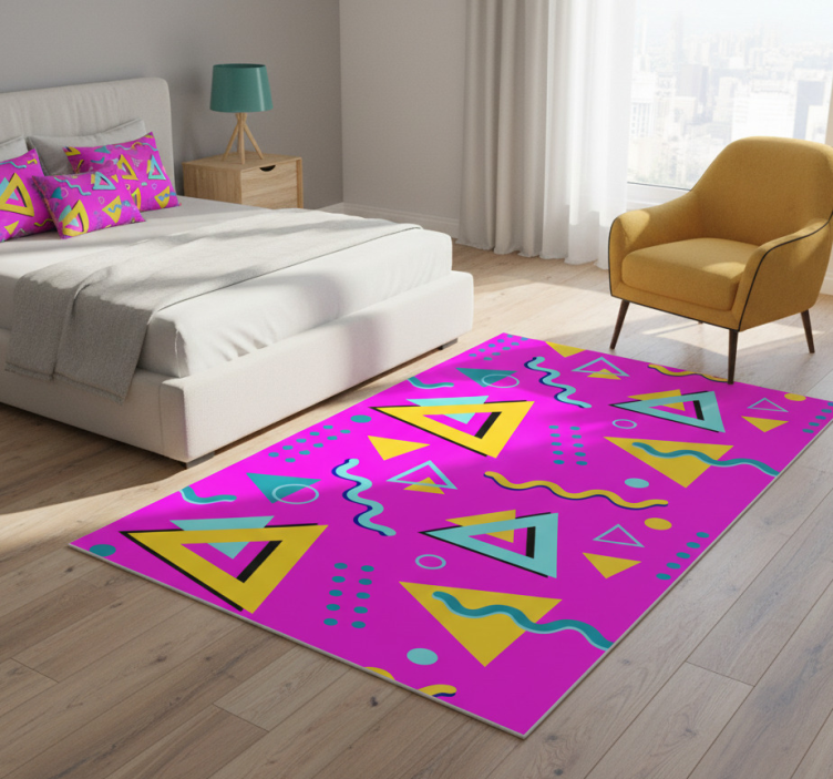 Vår Vinylmatta sovrum memphis retro 80 geometriska former är ett utmärkt val för att förvandla ditt sovrum till en stilren och inbjudande plats. Med sina livliga färger och lekfulla geometriska former skapar den en unik atmosfär som inspirerar till kreativitet och glädje. Dessutom bidrar den till att skydda ditt golv och ger en mjuk känsla under fötterna. Att inreda med denna matta gör att du kan uttrycka din personliga stil och skapa en trivsam miljö att koppla av i.