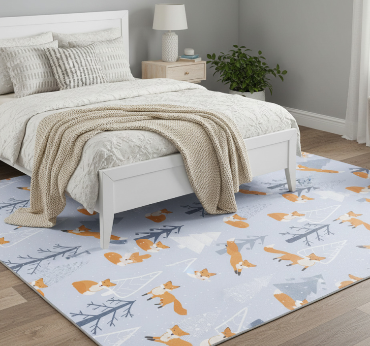 En Vinylmatta sovrum söt räv vinter skog mönster Vinylmatta sovrum är ett utmärkt val för dekoration eftersom den skapar en varm och välkomnande känsla i rummet. Den stiliga designen ger en lekfull kontrast till traditionella inredningsstilar och är perfekt för att inspirera fantasin hos både barn och vuxna. Låt denna matta bli en central del av din inredning och skapa en oas av komfort och stil!