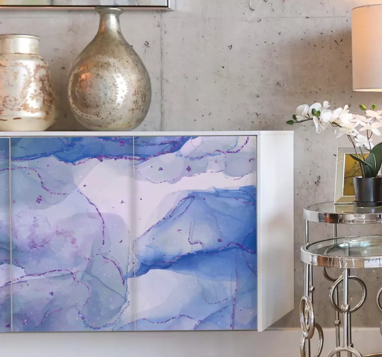 Det abstrakta klistermärket fluid blått mönster är en visuell fest för ögonen! Med sitt färgrika och konstnärliga uttryck skapar detta klistermärke en unik atmosfär i ditt hem. Denna design kombinerar en blå färgpalett med en iögonfallande textur som påminner om flytande vätska, vilket ger en modern och stilren känsla. Perfekt för att försköna möbler och väggar, kommer detta klistermärke att bli en samtalsämne i ditt hem!