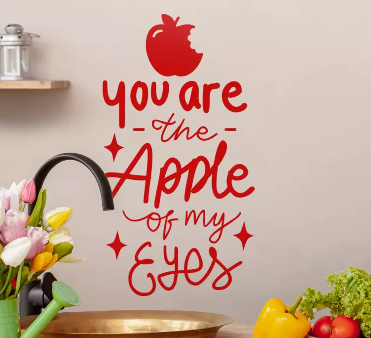Referens: A49160Ett lekfullt citat som betonar kärlek, med en livfull äppelillustration. Texten uttrycker kreativt ömhet, vilket gör den till ett härligt tillskott till köksinredningen. Denna design är lämplig för olika anpassningsbehov och ger en personlig touch till ditt utrymme.