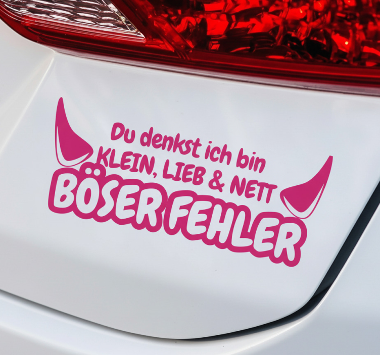 Referens: A53262Upptäck vårt fantastiska Bad mistake pink devil bilklistermärke som verkligen fångar ögat! Designen inkluderar en charmig rosa djävul som ger en lekfull touch till din bil. Med sin satinfinish reflekterar den inte ljus och ger utmärkt färgintensitet. Dessutom är klistermärket tillverkat av högkvalitativ vinyl som är både vattentålig och UV-resistent. Det är perfekt för att sätta en personlig prägel på din bil!