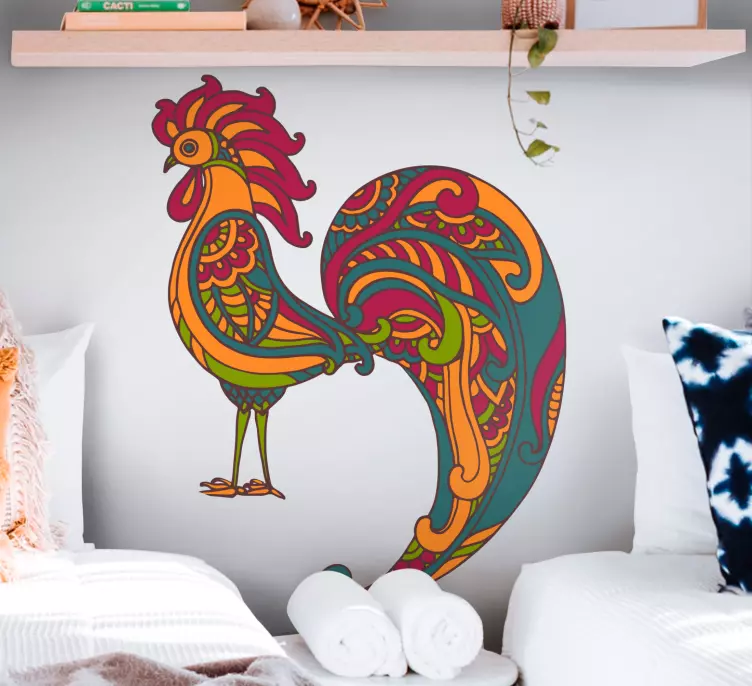 Upplev en livfull och färgglad värld med vårt Djur klistermärke färgglad tuppdesign! Denna unika design fångar essensen av en tupp genom en etnisk silhuett som är både vibrerande och utsmyckad. Med sitt dekorativa uttryck är detta klistermärke perfekt för att odla en lekfull atmosfär i ditt hem eller arbetsutrymme. Låt denna fantastiska design lysa upp dina väggar!