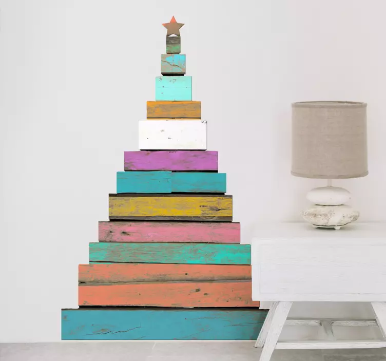 Upptäck vårt färgglada staplade trä event klistermärke, en fantastisk dekoration som verkligen fångar ögat! Med en unik design som kombinerar trä och trä-effekt, är detta klistermärke utformat som en julgran och passar perfekt för festliga tillfällen. Den färgrika paletten ger en livfull känsla som lyser upp varje rum. Gör ditt firande ännu mer speciellt med detta dekorativa klistermärke som verkligen sätter stämningen!