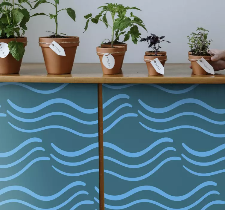 Upptäck de flödande akvamönster klistermärkena till möbler, som är en fantastisk fusion av stil och funktionalitet. Med sina vackra grafiska element av vågor, mönster och växter i en underbar blå nyans, ger dessa klistermärken en levande känsla till dina möbler. De är perfekta för att förvandla en enkel pott eller ett tråkigt hem till en oas av kreativitet och stil!