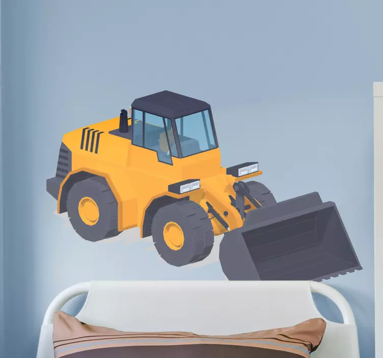 Grävmaskin gul och svart bulldozer till vänster leksaksdekal