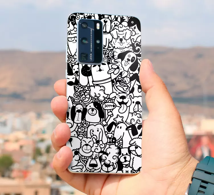 Detta Huawei klistermärke med lekfulla hundmotiv är en fantastisk dekorativ lösning för din telefon! Med sina roliga mönster av hundar och valpar i en stilren svartvit design, ger det en lekfull och charmig touch till ditt mobilskal. Perfekt för djurälskare som vill ha något unikt och personligt på sin enhet!