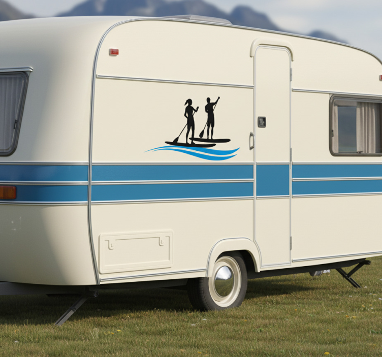 Genom att köpa vårt Husvagn klistermärke aktiv paddelboarding duo husvagn klistermärke i vår onlinebutik får du inte bara en produkt av högsta kvalitet, utan också en enkel och smidig beställningsprocess. Den är designad för att passa på husvagnar, men kan även användas på andra plana ytor. Välj detta klistermärke och ge din husvagn en unik karaktär!