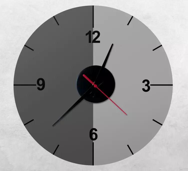 Referens: A49334En stilren klocka med en minimalistisk design i ljusa och mörka grå nyanser. De djärva timmarkörerna och de kontrasterande klockvisarna skapar en slående visuell effekt, perfekt för att ge en touch av modern elegans till vilket utrymme som helst.