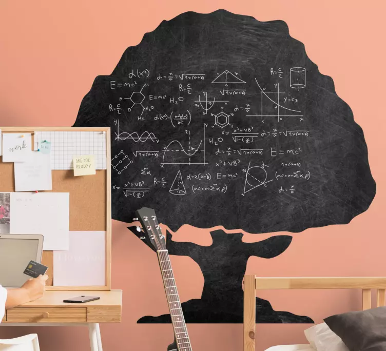 Grafisk design med stil och funktionUpptäck vår fantastiska Krittavla klistermärken vetenskaplig trädskiss, som kombinerar en elegant design med praktiska funktioner. Denna svarta tavla, avbildad som en silhuett av ett ekträd, förvandlar varje vägg till en inspirerande plats för utbildning och kreativitet. Med sin vetenskapliga översikt är den perfekt för att illustrera matematik och fysik, och den skapar en unik atmosfär i både hemmet och klassrummet.
