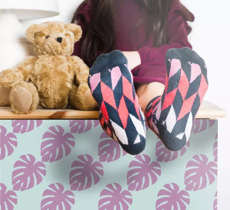Referens: A48798Ett mjukt mönster med monstera blad i ljusa pastellfärger, som framkallar en fräsch och organisk atmosfär. Designens upprepning ger en harmonisk känsla, vilket gör den perfekt för dem som uppskattar naturinspirerad estetik.